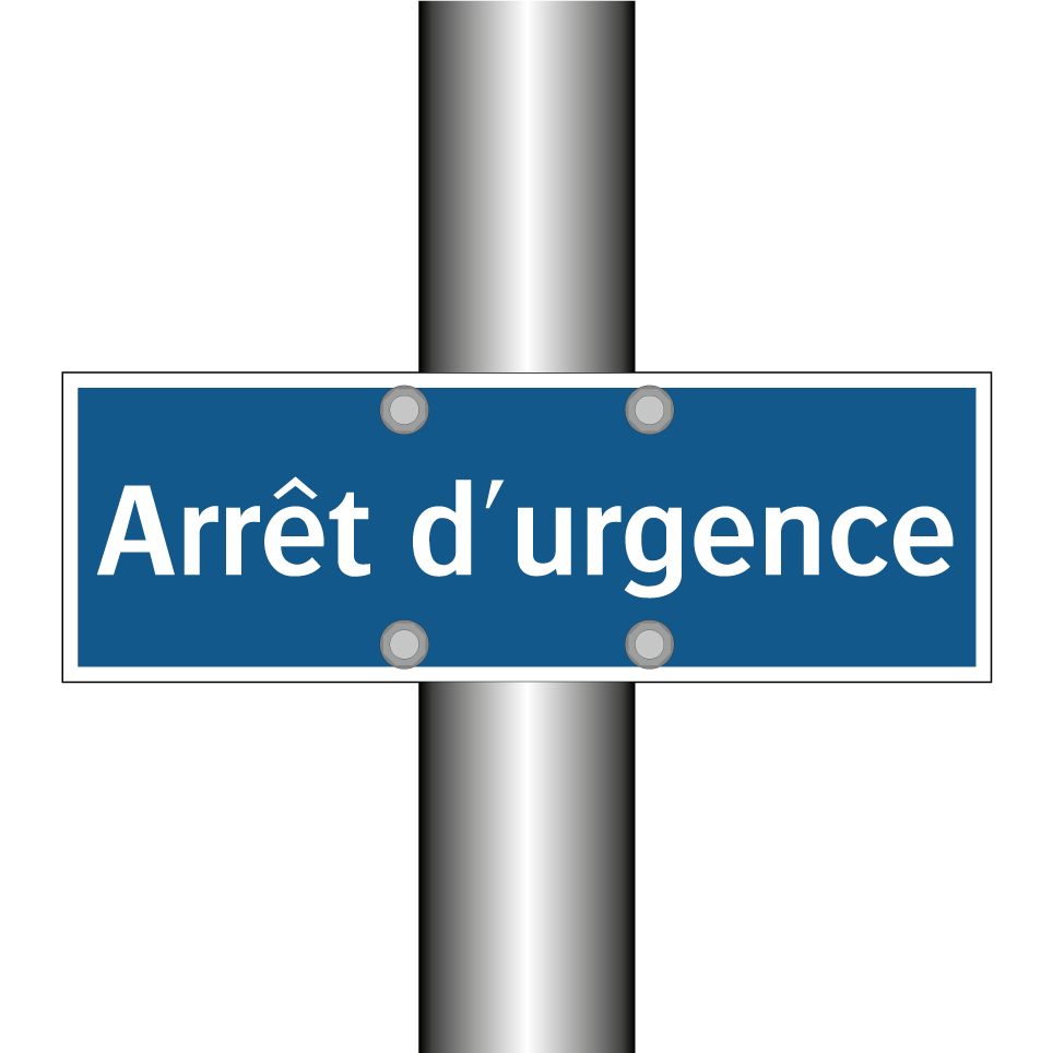 Panneau d'obligation avec le texte : "Arrêt d'urgence"
