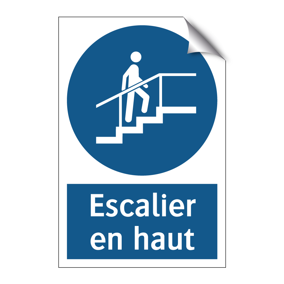 Panneau d'obligation avec le texte : "Escalier en haut"