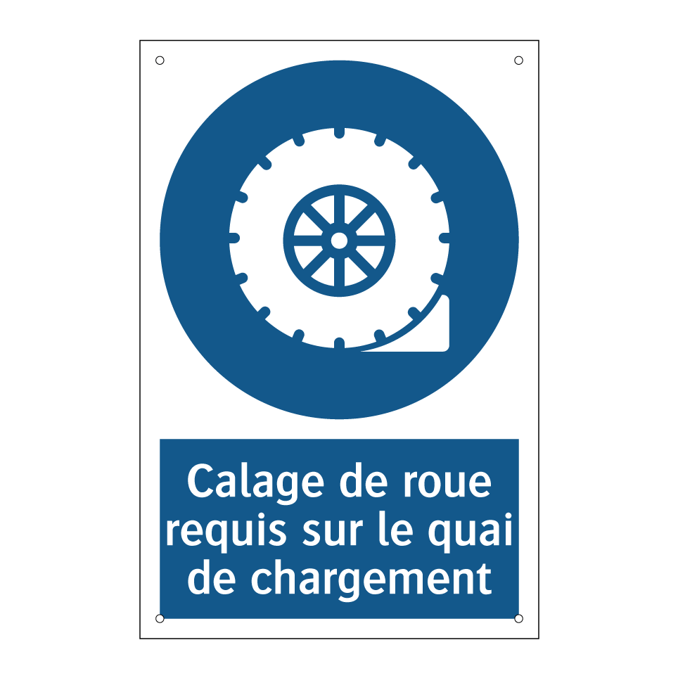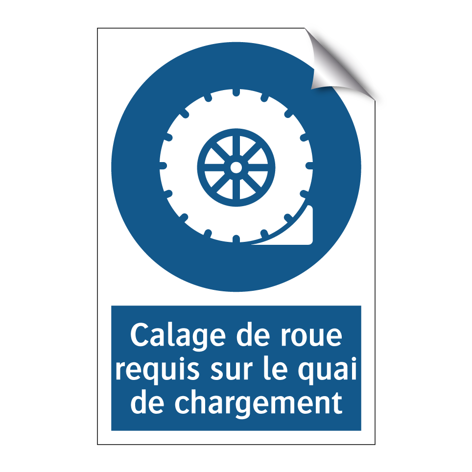 Panneau d'obligation avec le texte : "Calage de roue requis sur le quai de chargement"