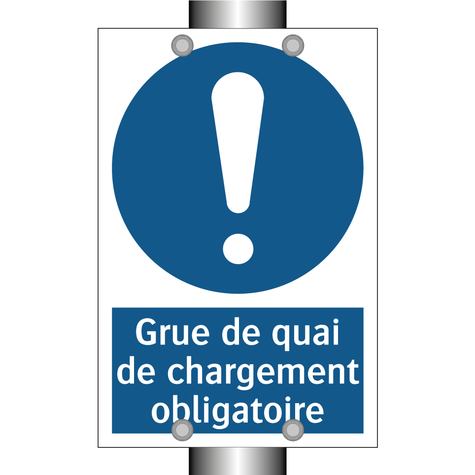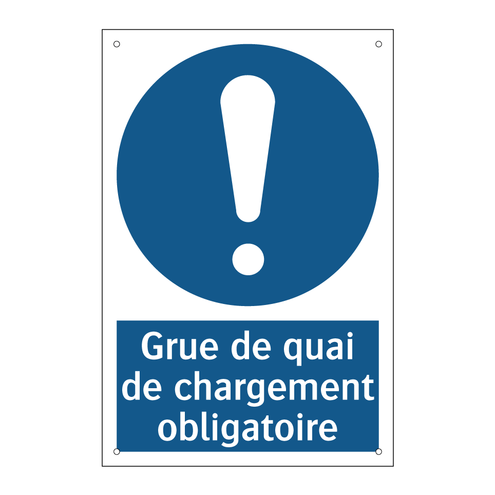 Panneau d'obligation avec le texte : "Grue de quai de chargement obligatoire"