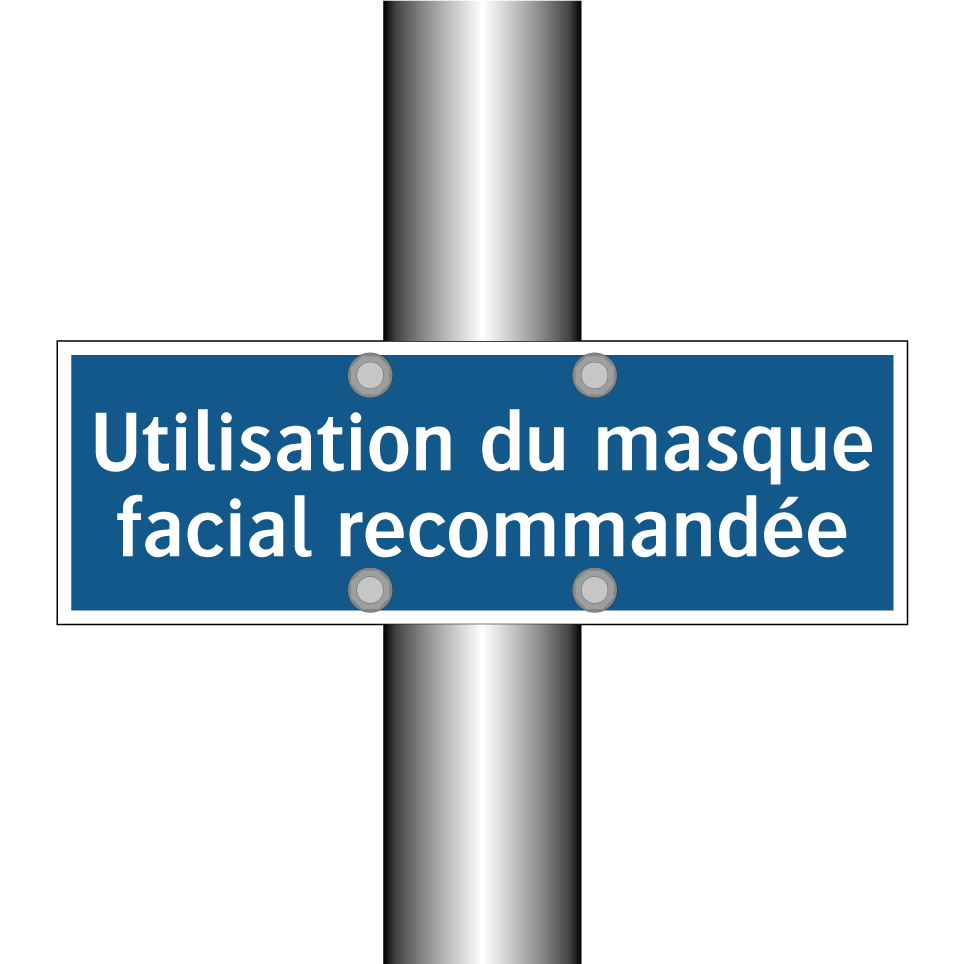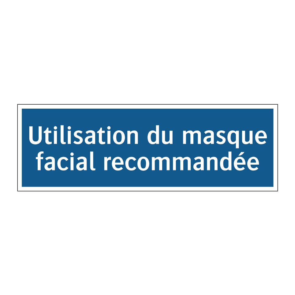Panneau d'obligation avec le texte : "Utilisation du masque facial recommandée"