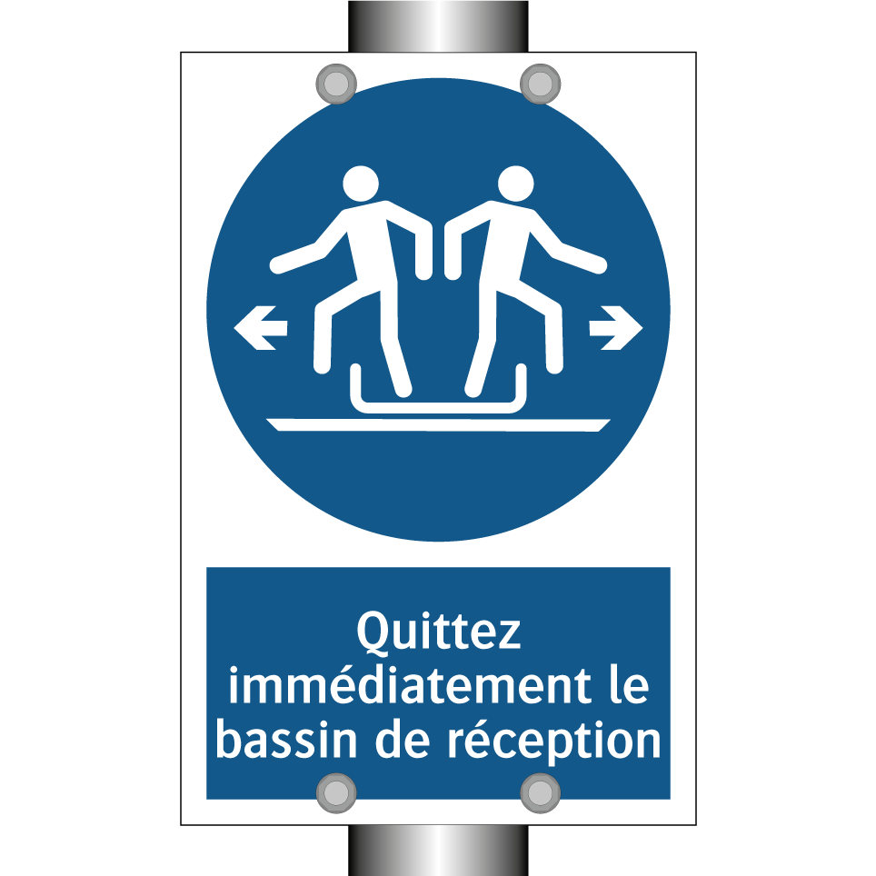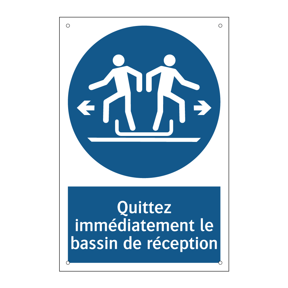 Panneau d'obligation avec le texte : "Quittez immédiatement le bassin de réception"