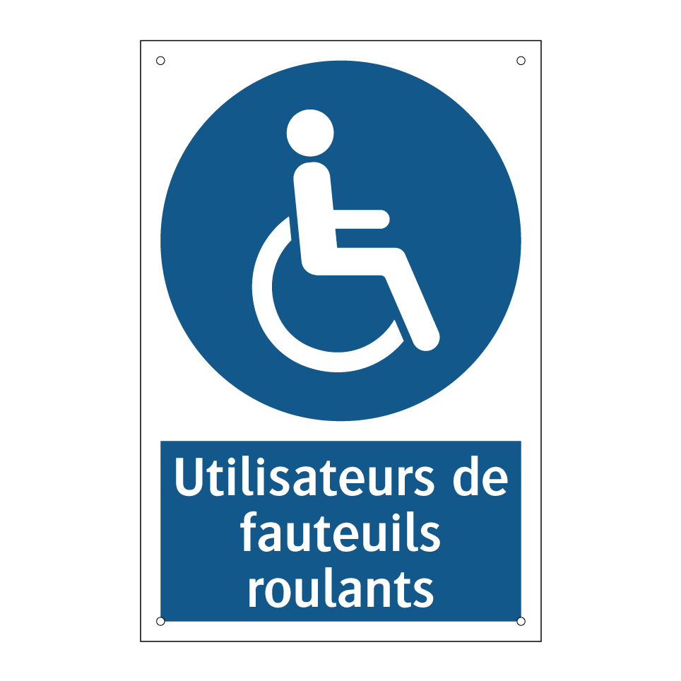 Panneau d'obligation avec le texte : "Utilisateurs de fauteuils roulants"