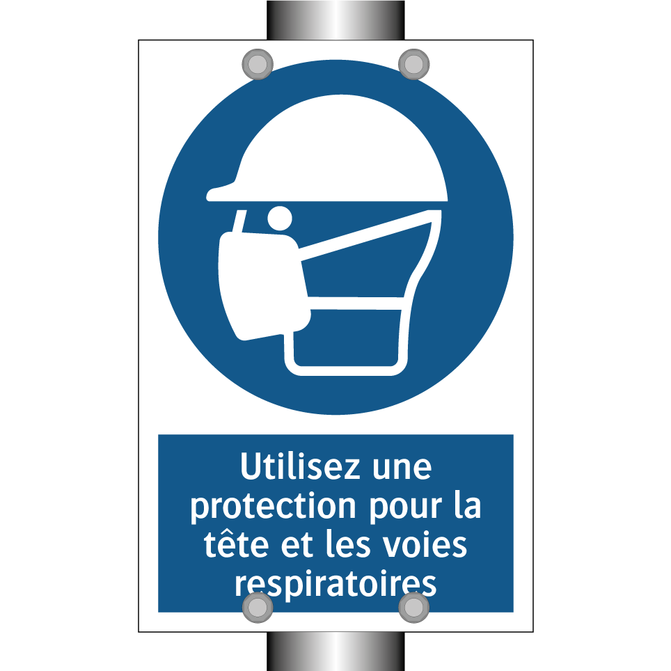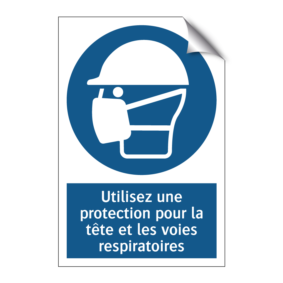 Panneau d'obligation avec le texte : "Utilisez une protection pour la tête et les voies respiratoires"
