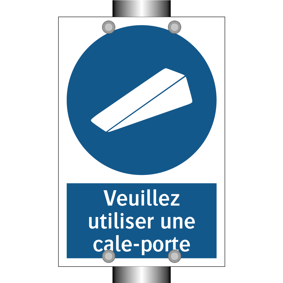 Panneau d'obligation avec le texte : "Veuillez utiliser une cale-porte"