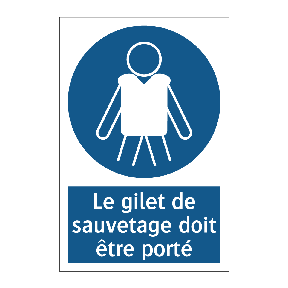 Panneau d'obligation avec le texte : "Le gilet de sauvetage doit être porté"