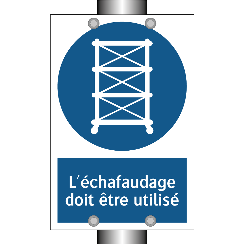 Panneau d'obligation avec le texte : "L'échafaudage doit être utilisé"