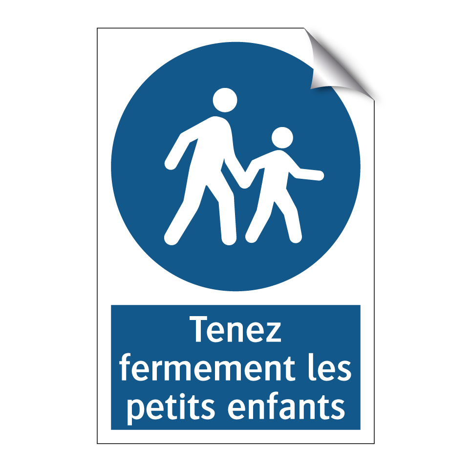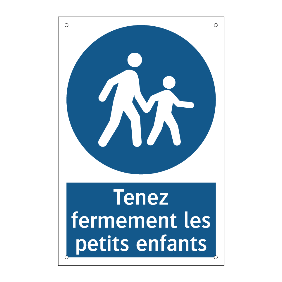 Panneau d'obligation avec le texte : "Tenez fermement les petits enfants"