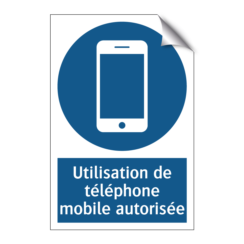Panneau d'obligation avec le texte : "Utilisation de téléphone mobile autorisée"
