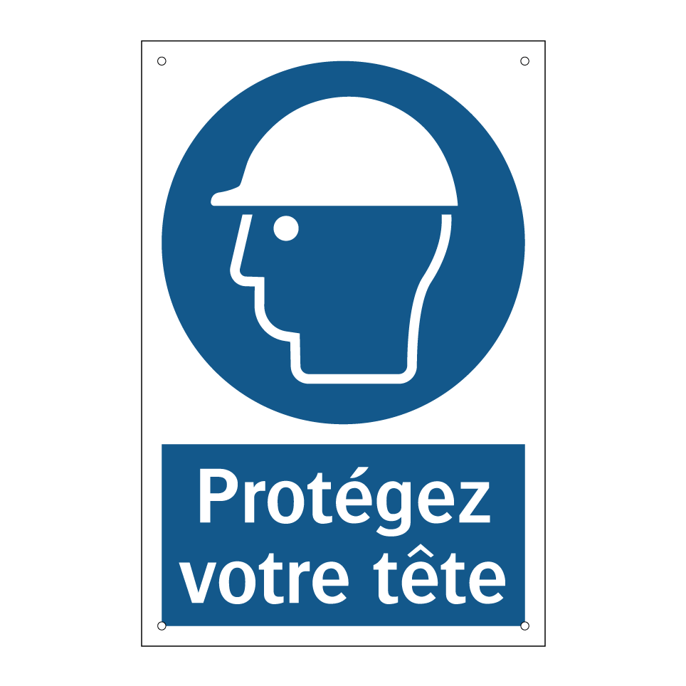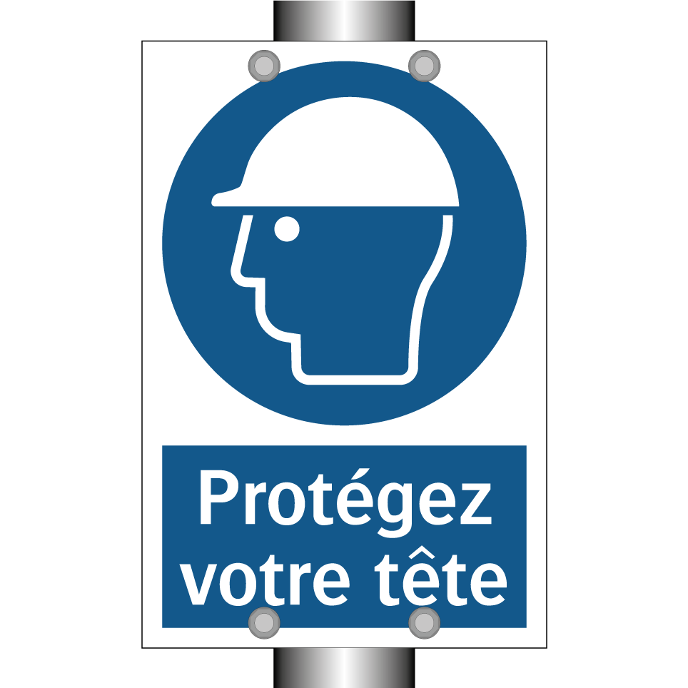 Panneau d'obligation avec le texte : "Protégez votre tête"
