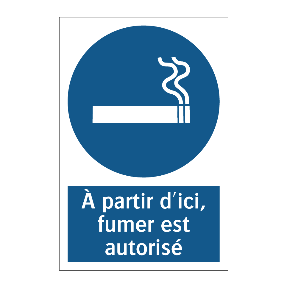 Panneau d'obligation avec le texte : "À partir d'ici, fumer est autorisé"