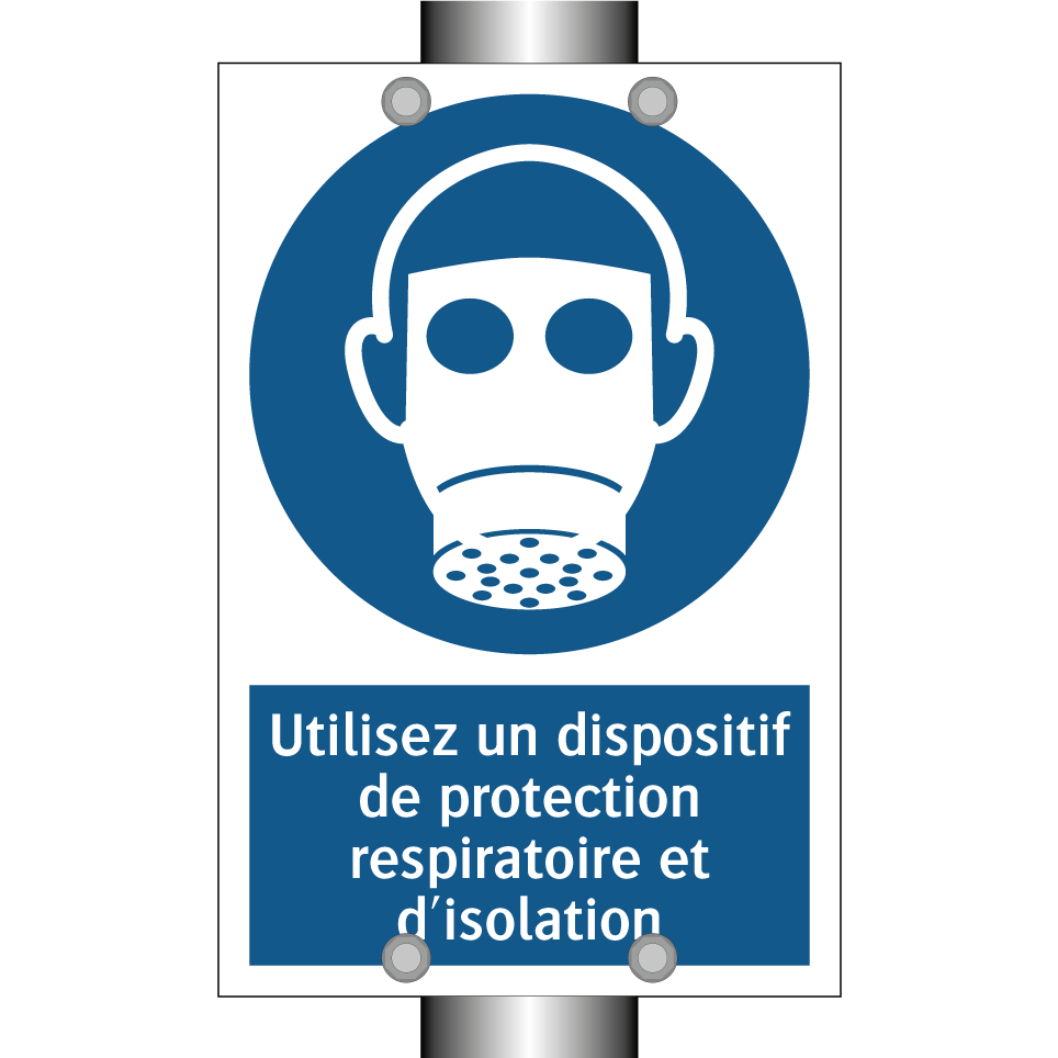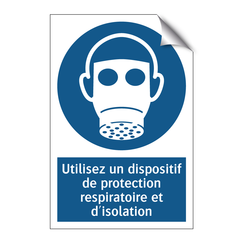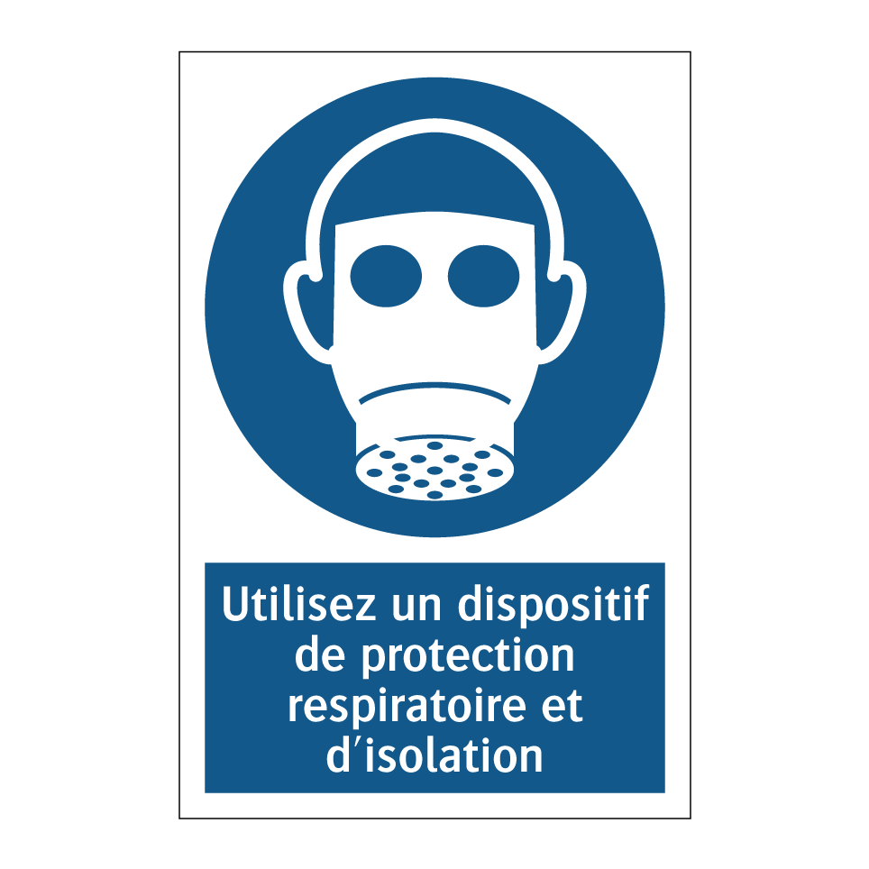 Panneau d'obligation avec le texte : "Utilisez un dispositif de protection respiratoire et d'isolation"