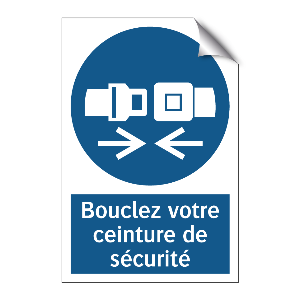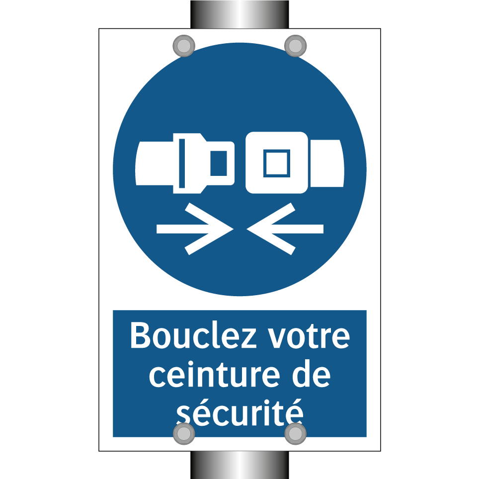 Panneau d'obligation avec le texte : "Bouclez votre ceinture de sécurité"