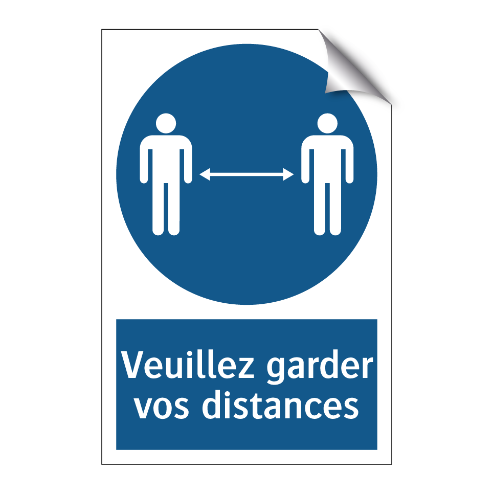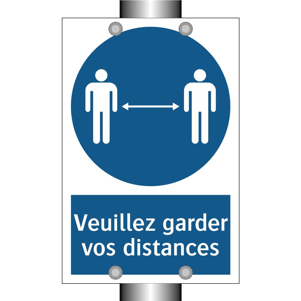 Panneau d'obligation avec le texte : "Veuillez garder vos distances"