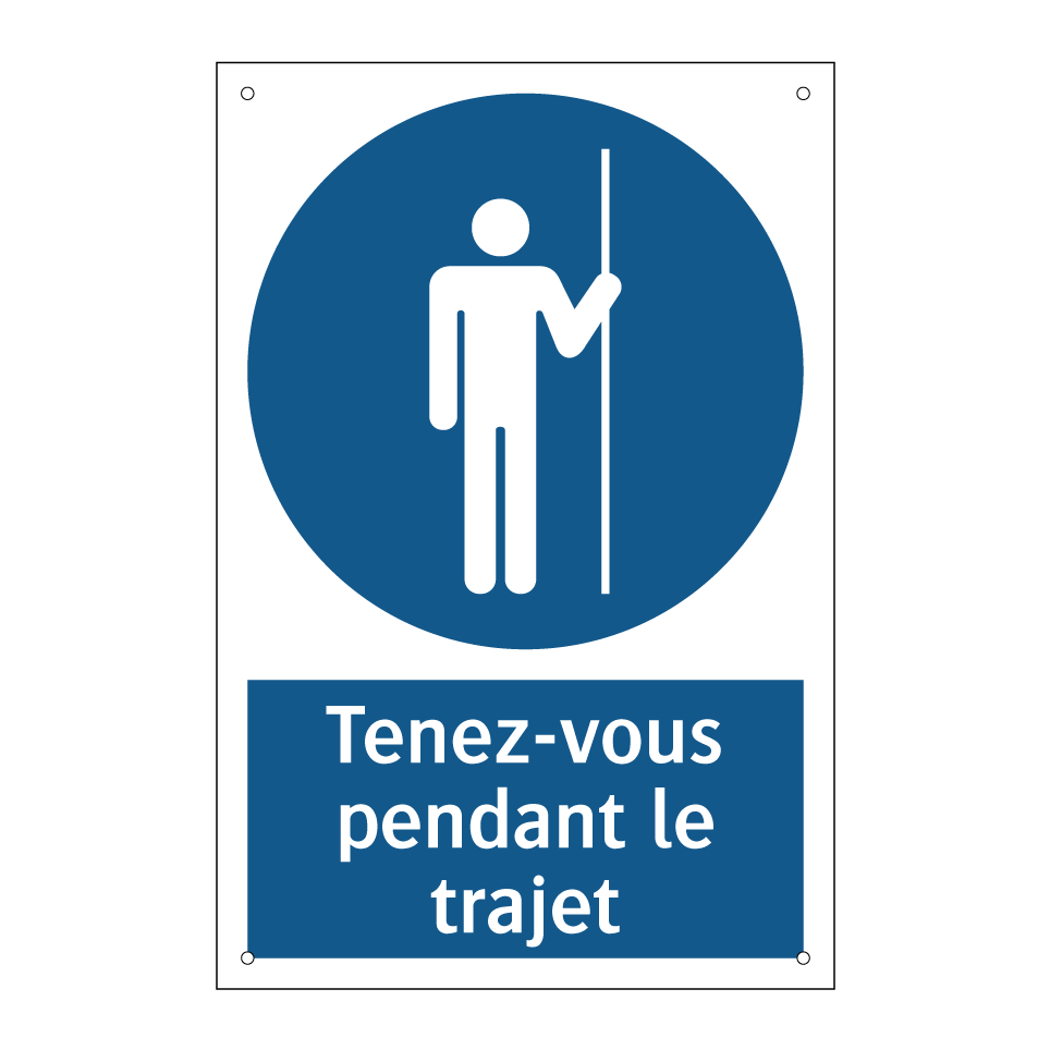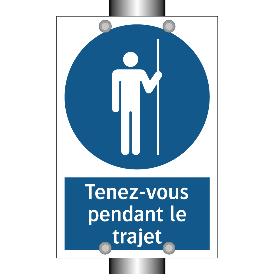 Panneau d'obligation avec le texte : "Tenez-vous pendant le trajet"