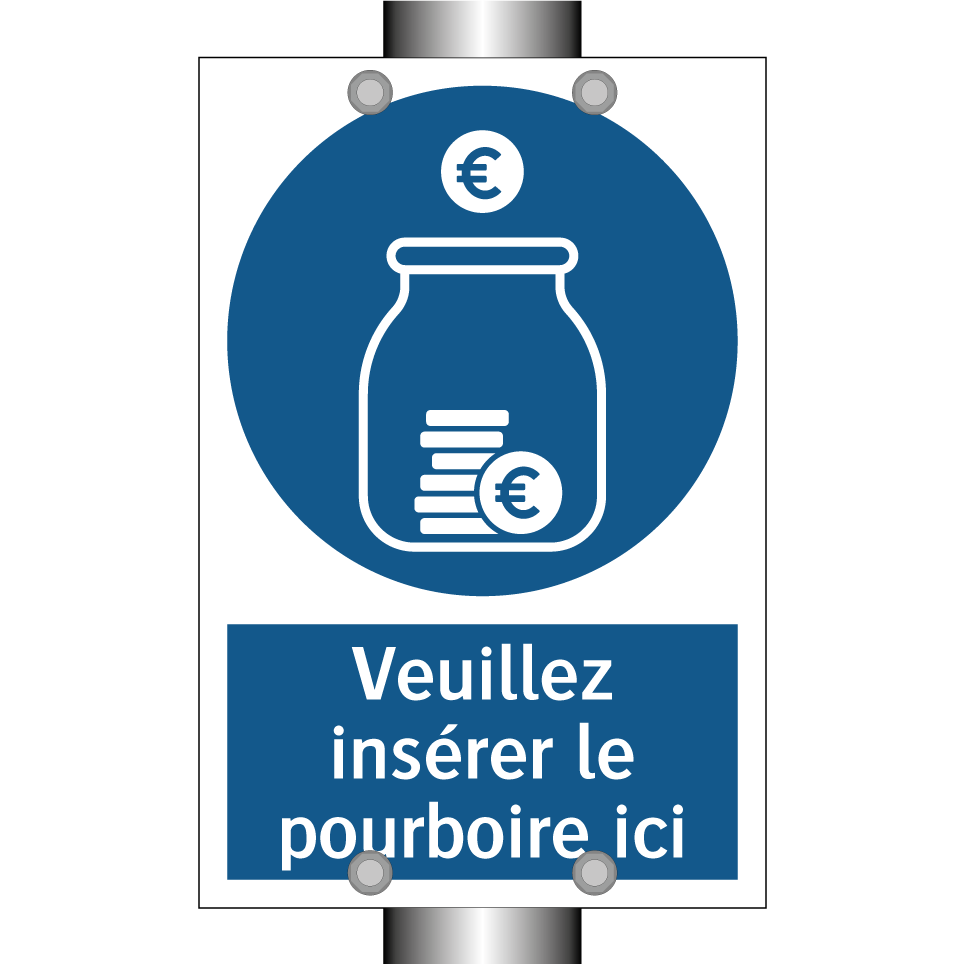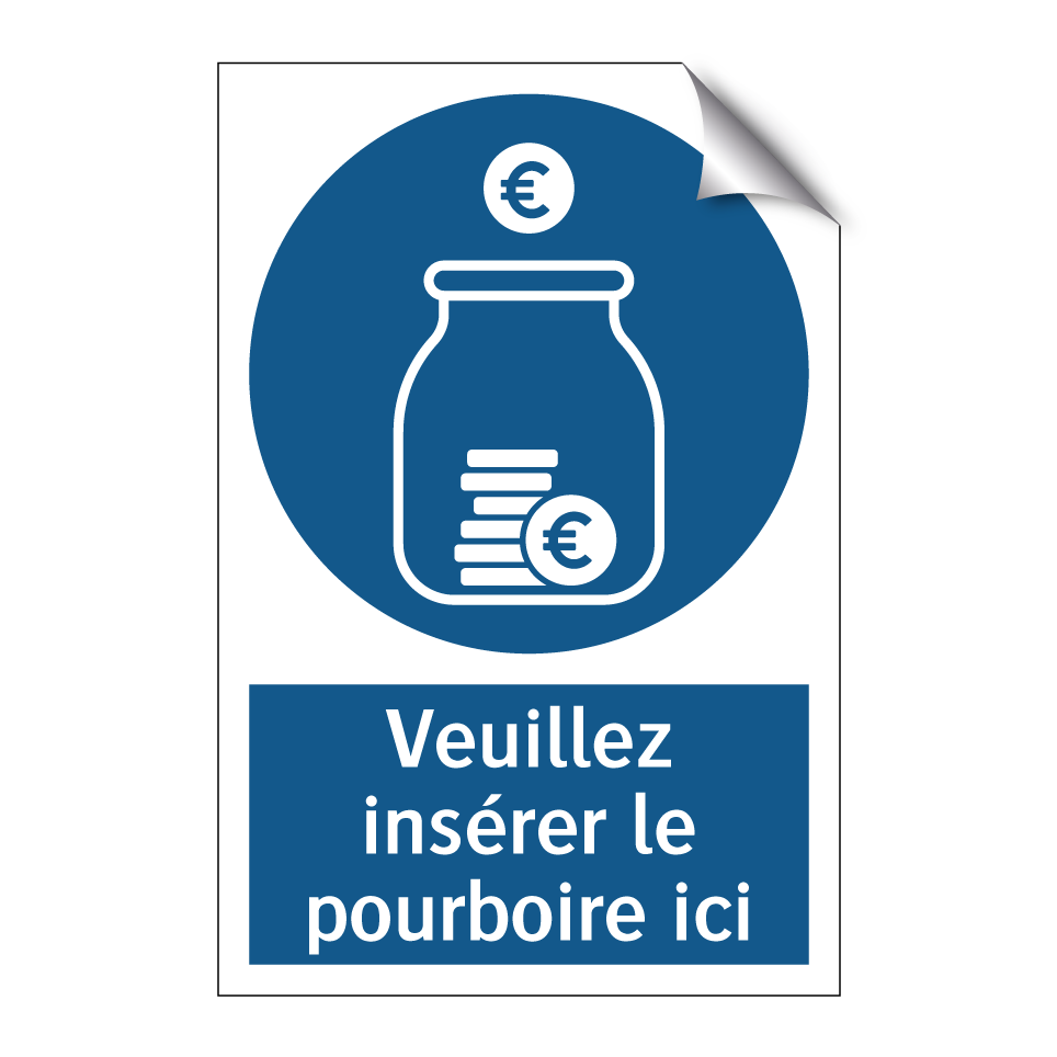 Panneau d'obligation avec le texte : "Veuillez insérer le pourboire ici"