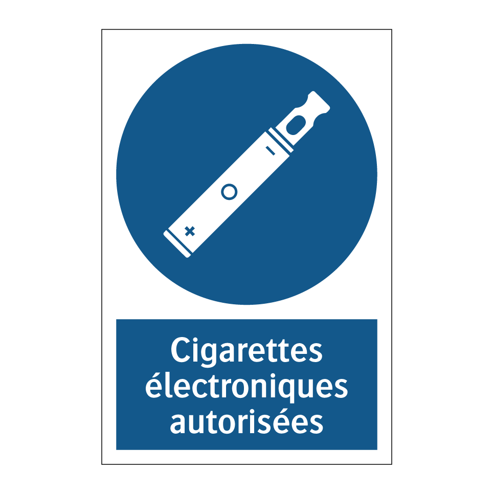 Panneau d'obligation avec le texte : "Cigarettes électroniques autorisées"