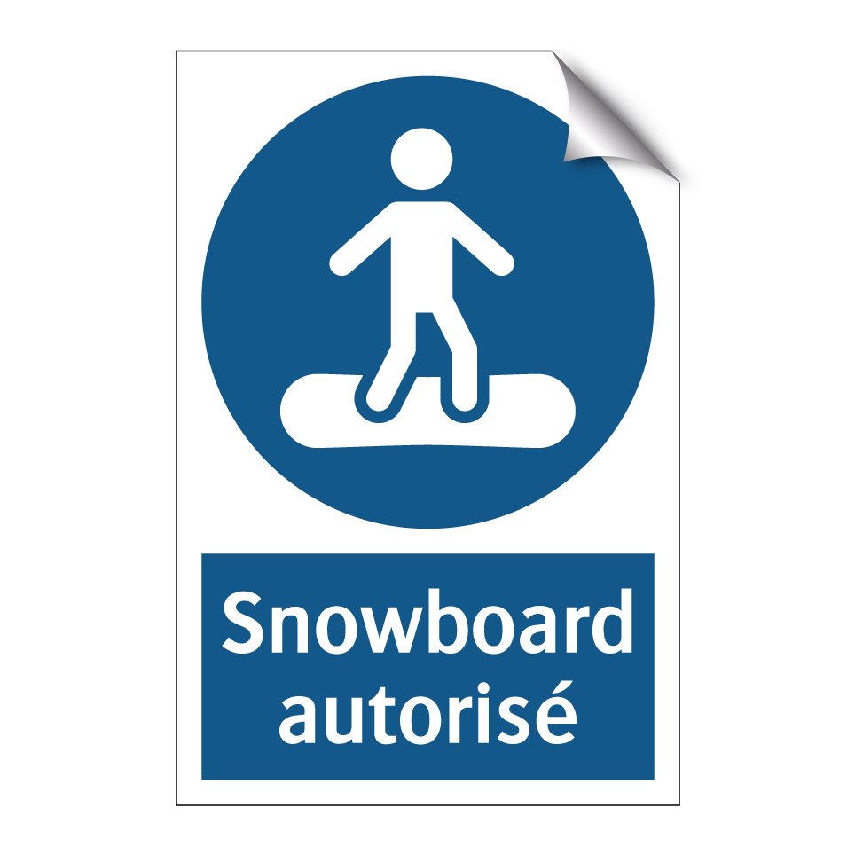 Panneau d'obligation avec le texte : "Snowboard autorisé"
