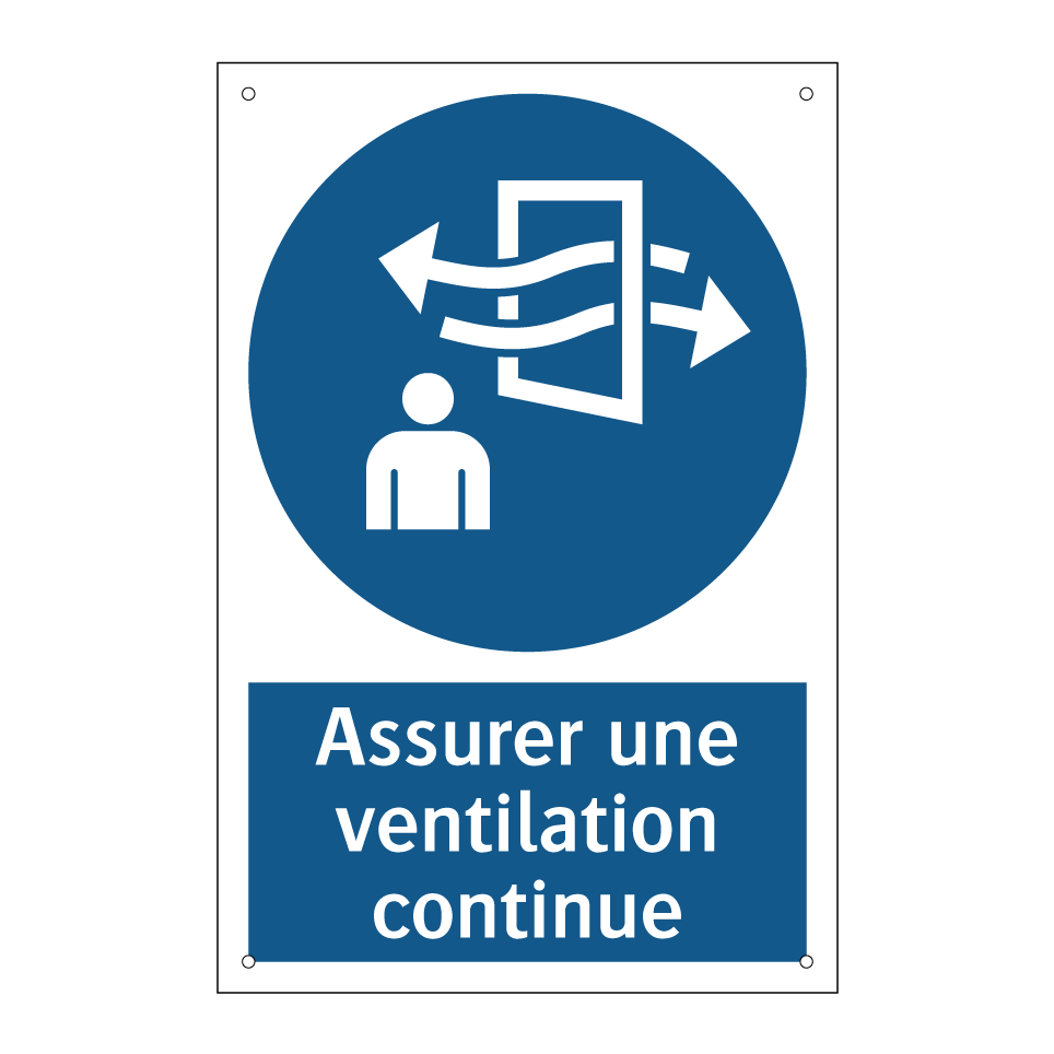 Panneau d'obligation avec le texte : "Assurer une ventilation continue"