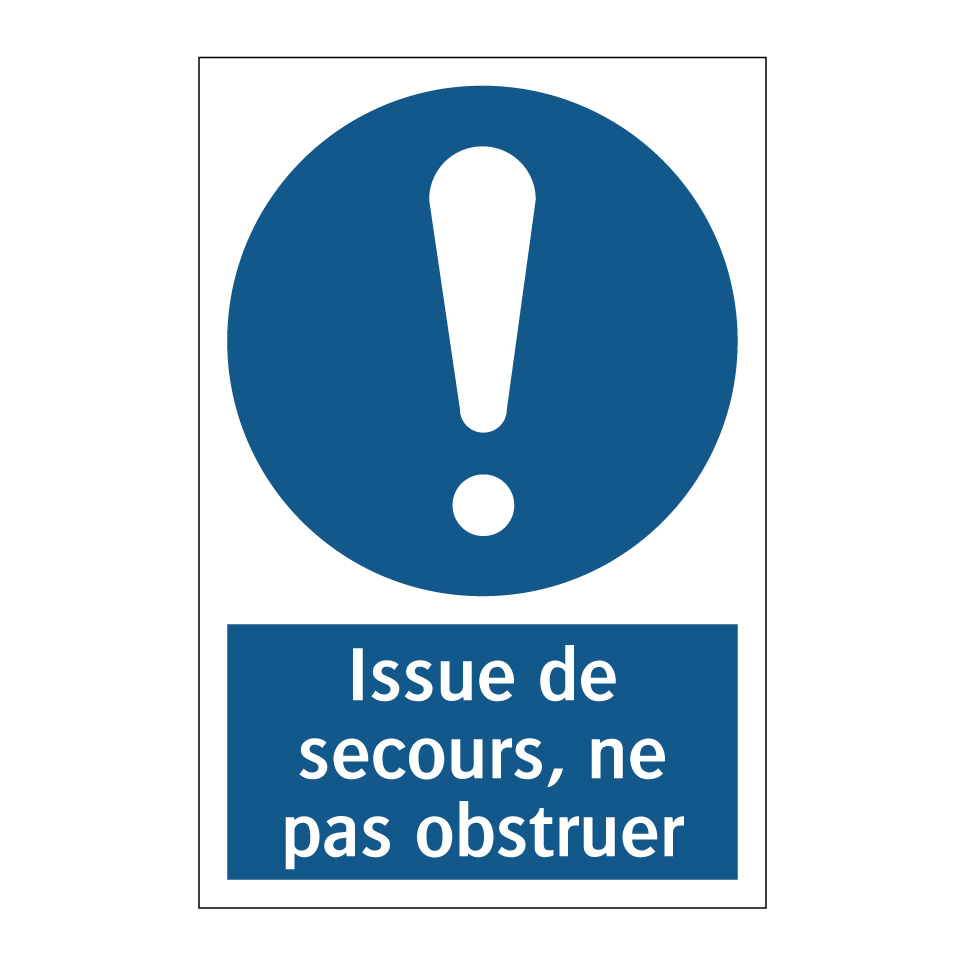 Panneau d'obligation avec le texte : "Issue de secours, ne pas obstruer"