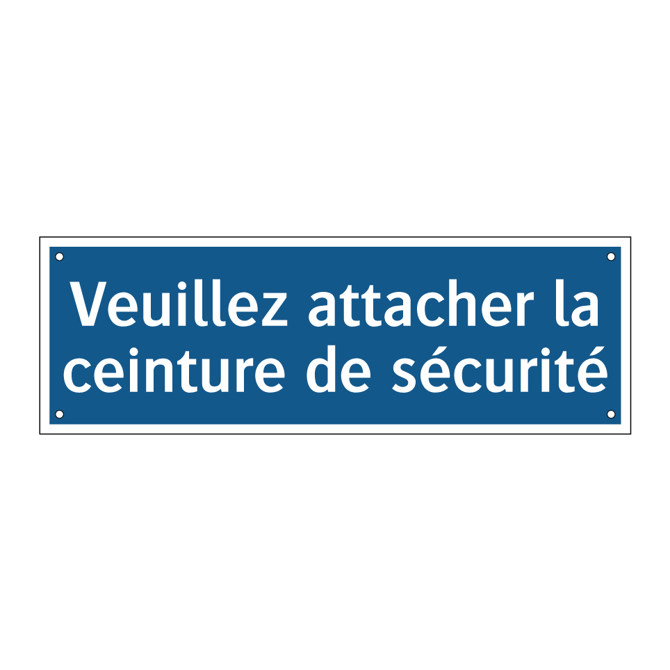 Panneau d'obligation avec le texte : "Veuillez attacher la ceinture de sécurité"