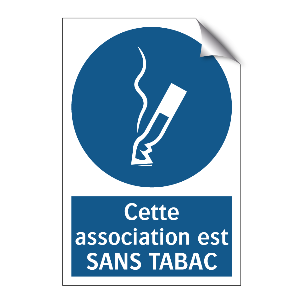 Panneau d'obligation avec le texte : "Cette association est SANS TABAC"