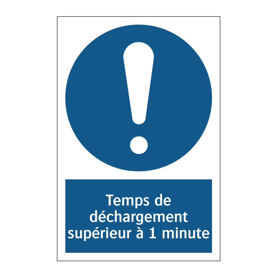 Panneau d'obligation avec le texte : "Temps de déchargement supérieur à 1 minute"