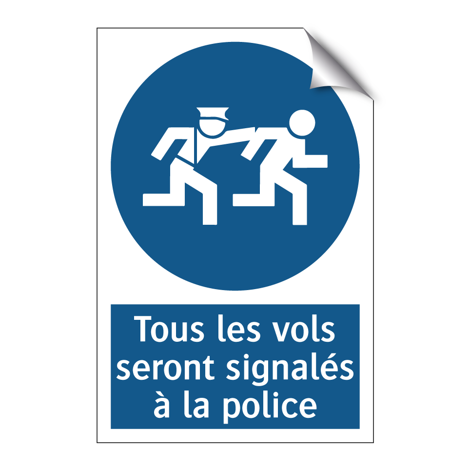 Panneau d'obligation avec le texte : "Tous les vols seront signalés à la police"