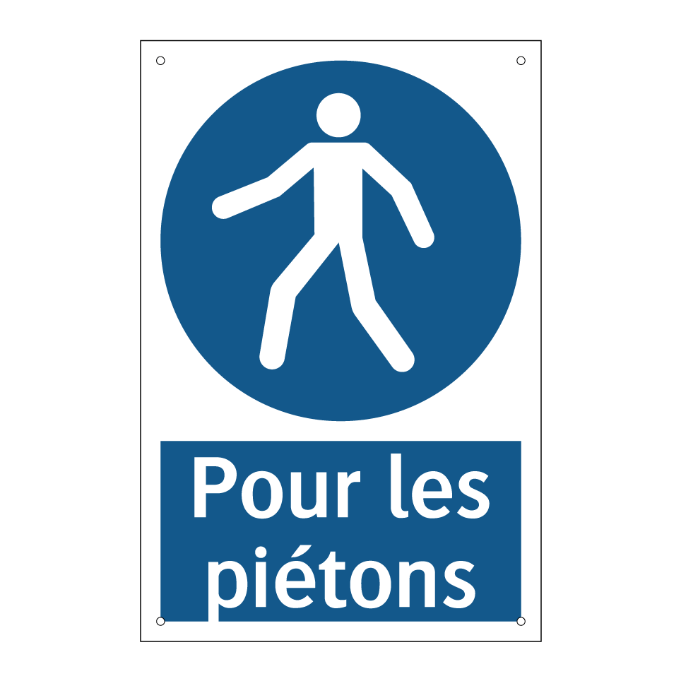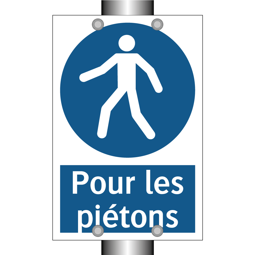 Panneau d'obligation avec le texte : "Pour les piétons"