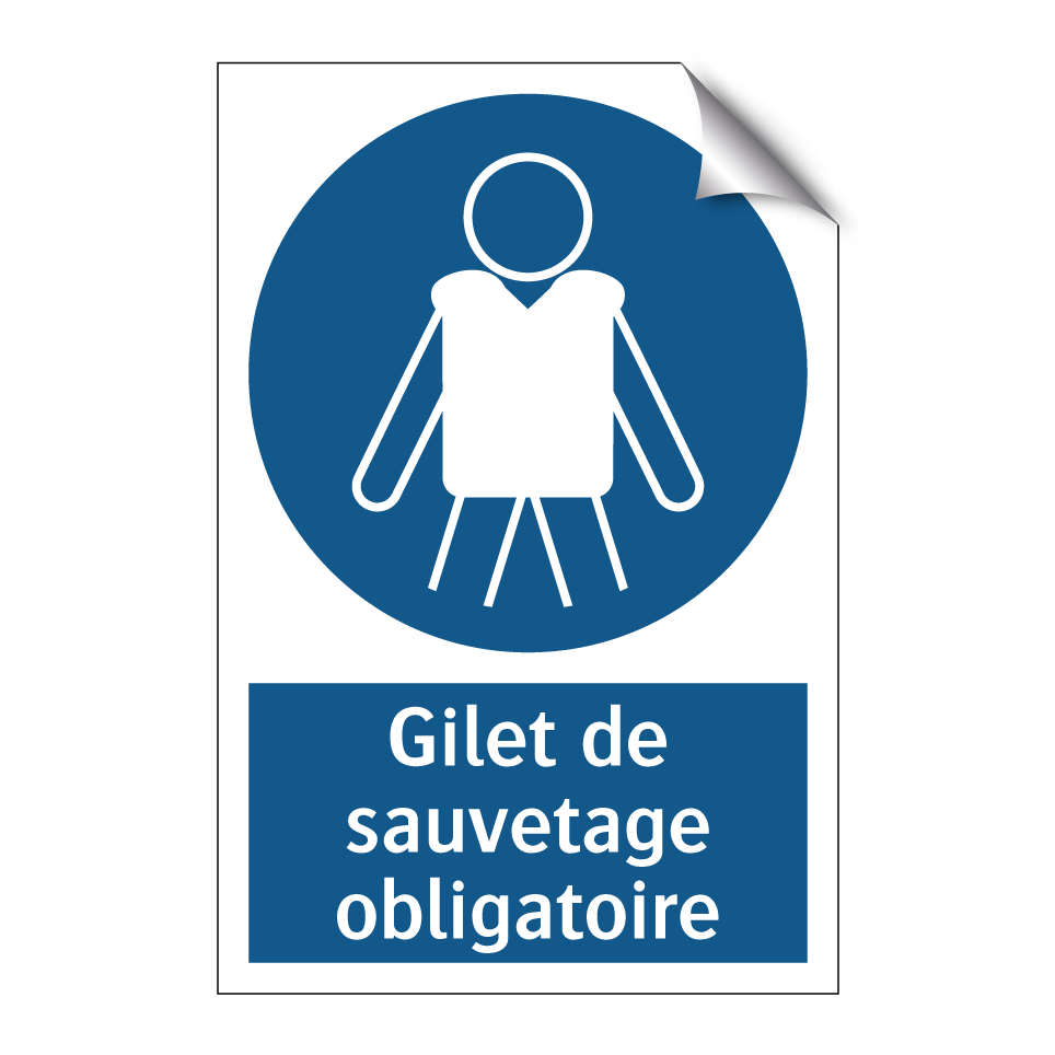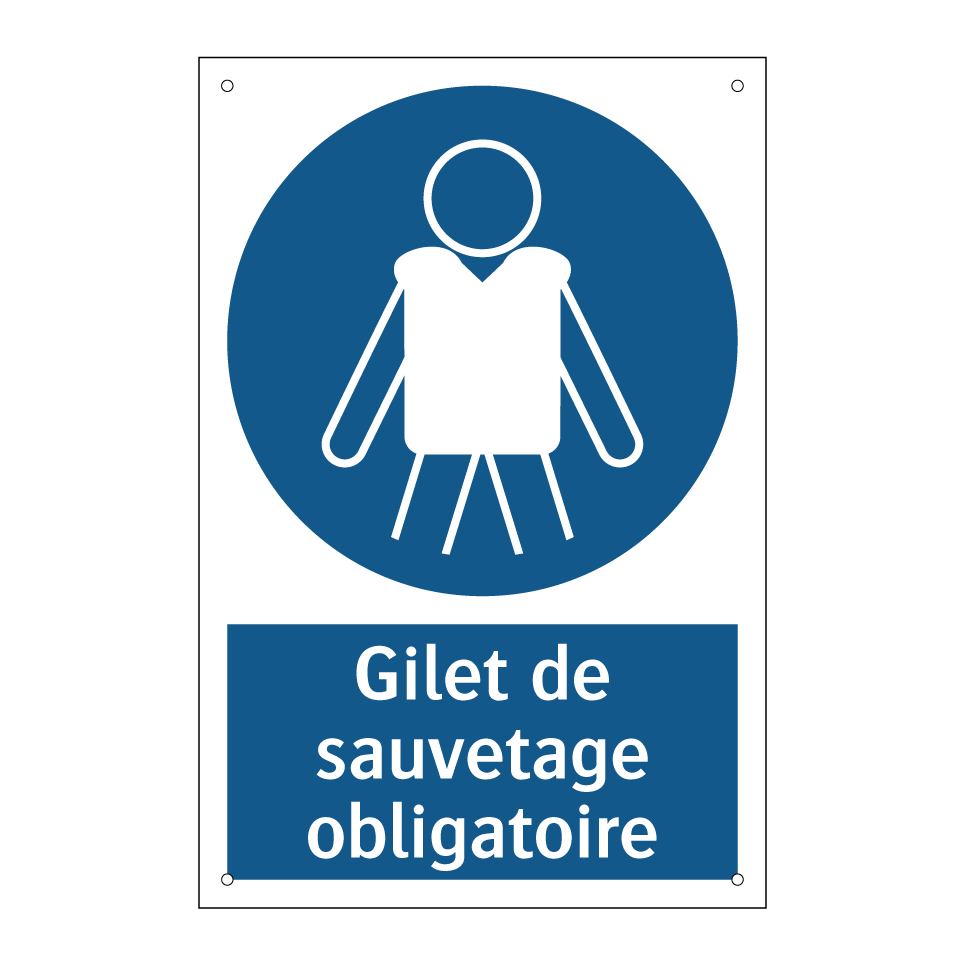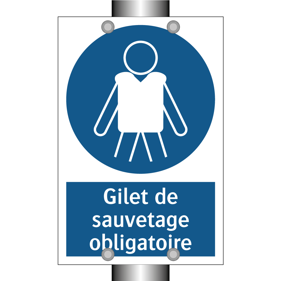 Panneau d'obligation avec le texte : "Gilet de sauvetage obligatoire"