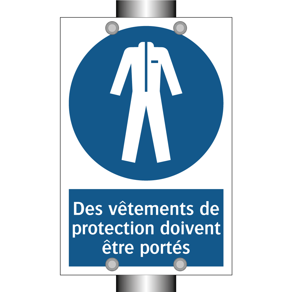 Panneau d'obligation avec le texte : "Des vêtements de protection doivent être portés"