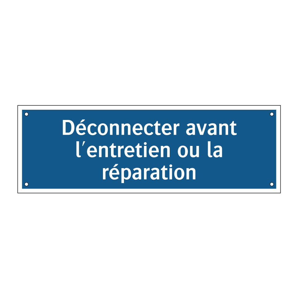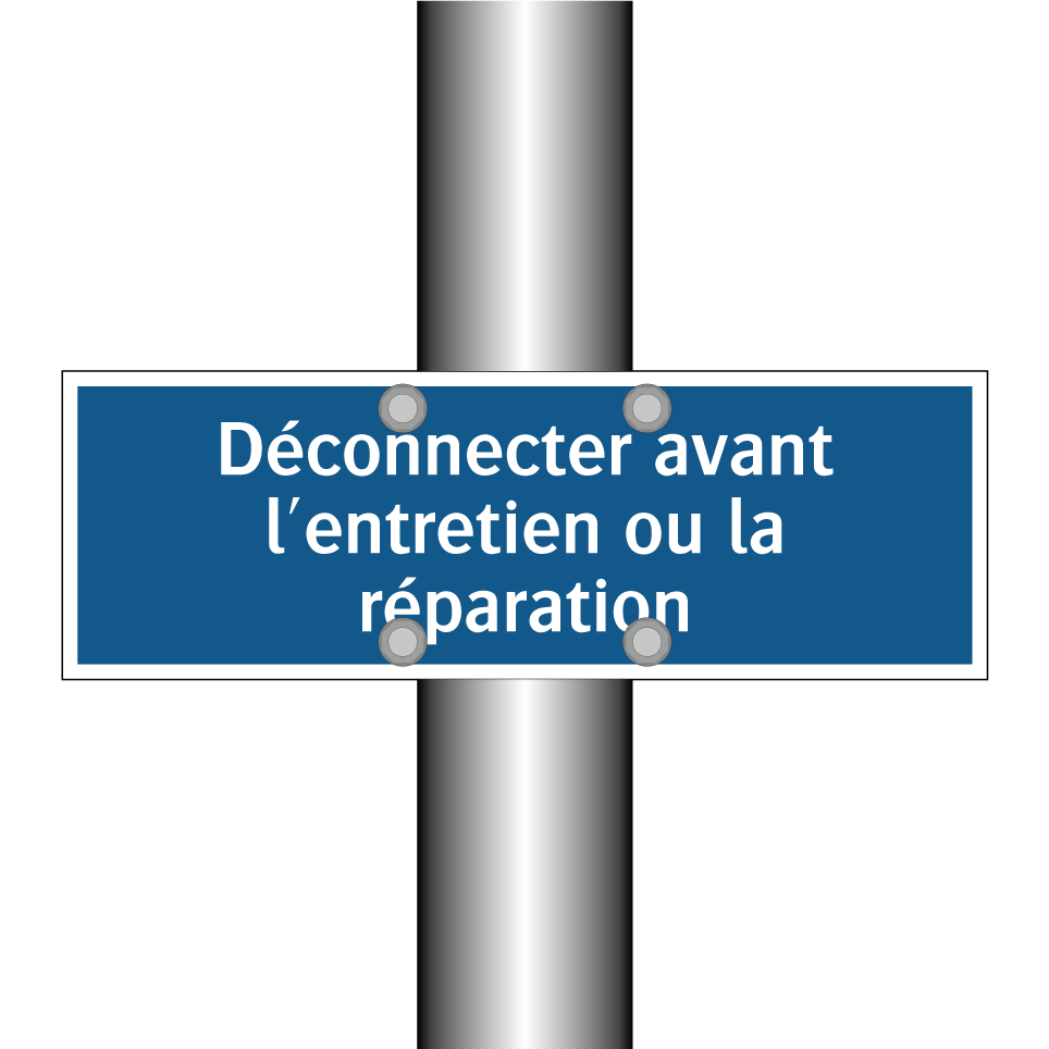 Panneau d'obligation avec le texte : "Déconnecter avant l'entretien ou la réparation"