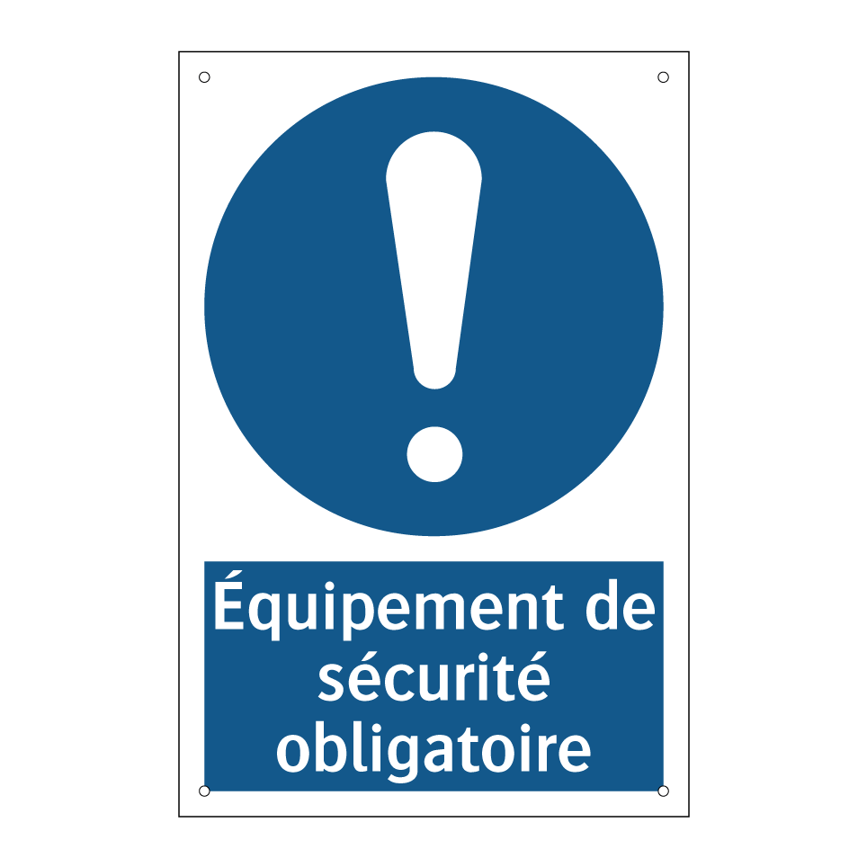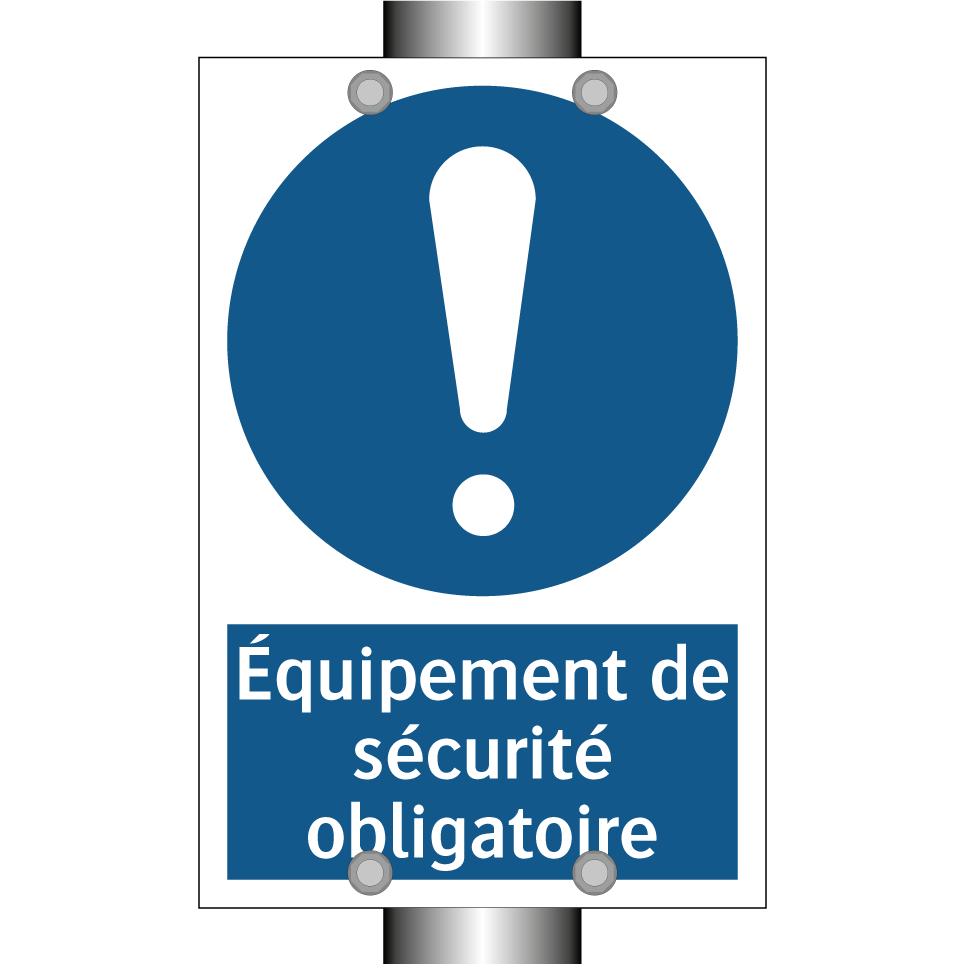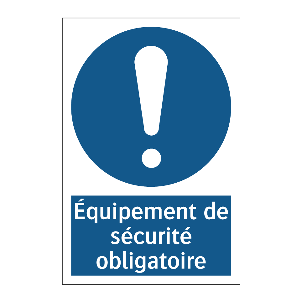 Panneau d'obligation avec le texte : "Équipement de sécurité obligatoire"