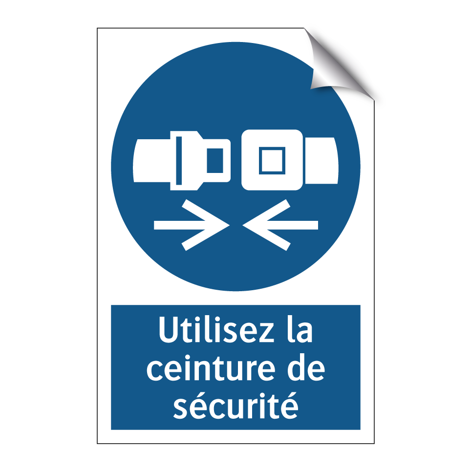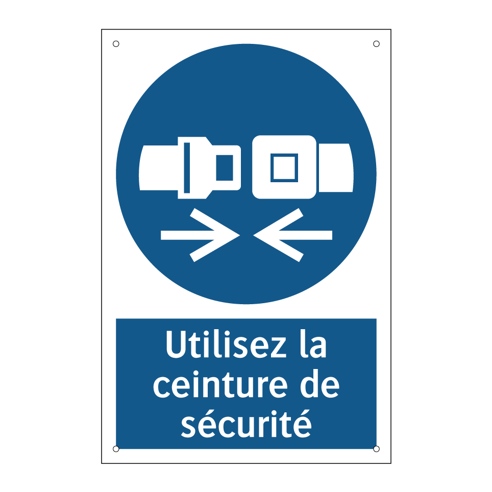 Panneau d'obligation avec le texte : "Utilisez la ceinture de sécurité"
