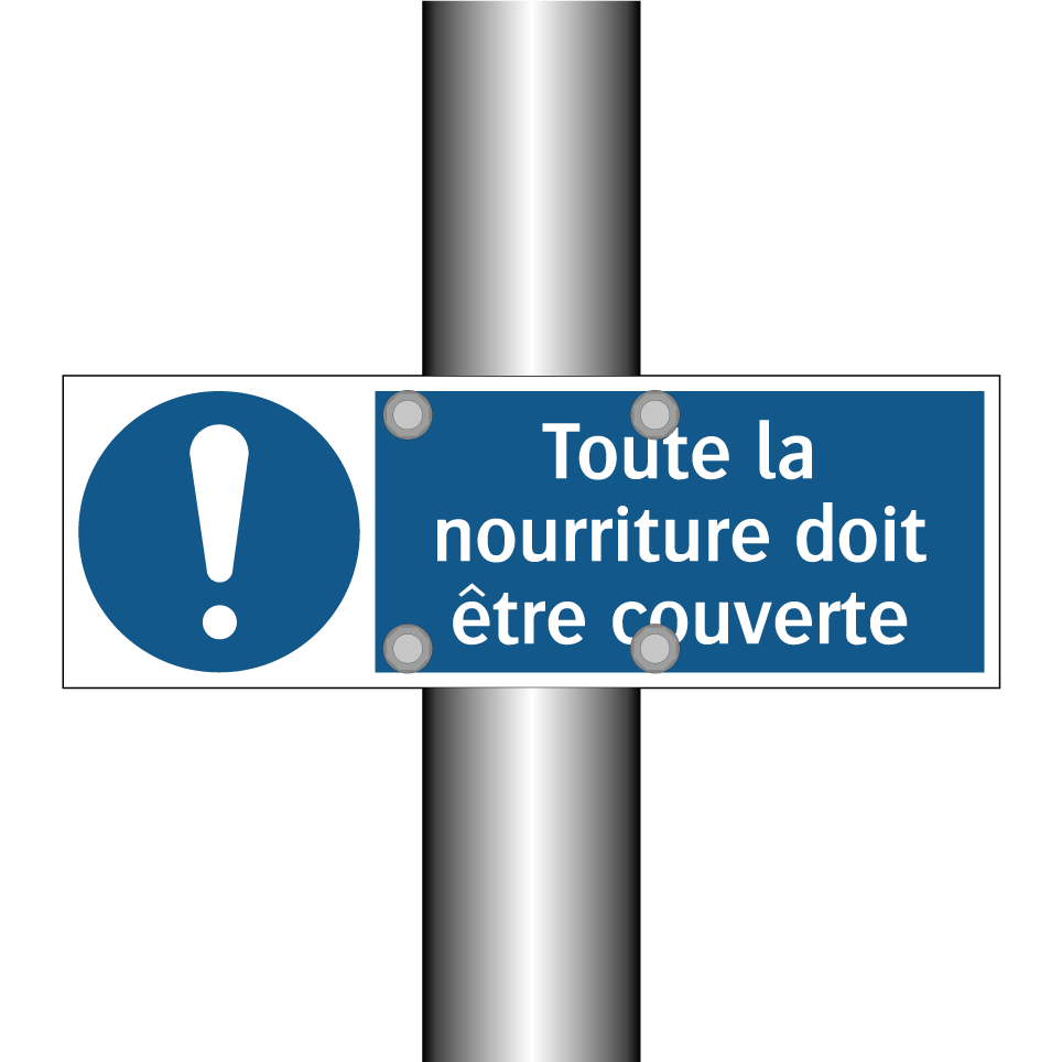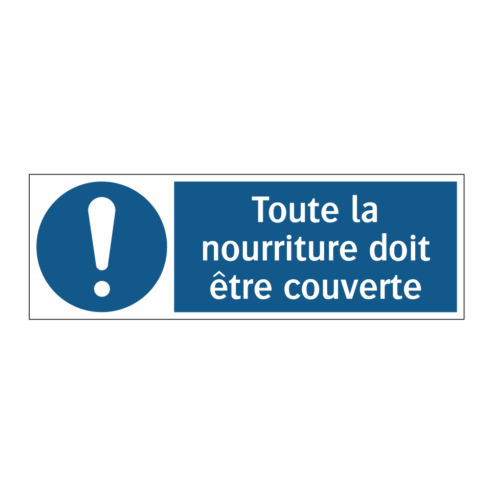 Panneau d'obligation avec le texte : "Toute la nourriture doit être couverte"