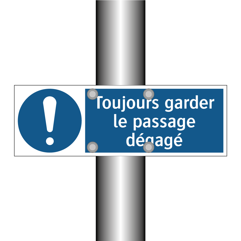 Panneau d'obligation avec le texte : "Toujours garder le passage dégagé"