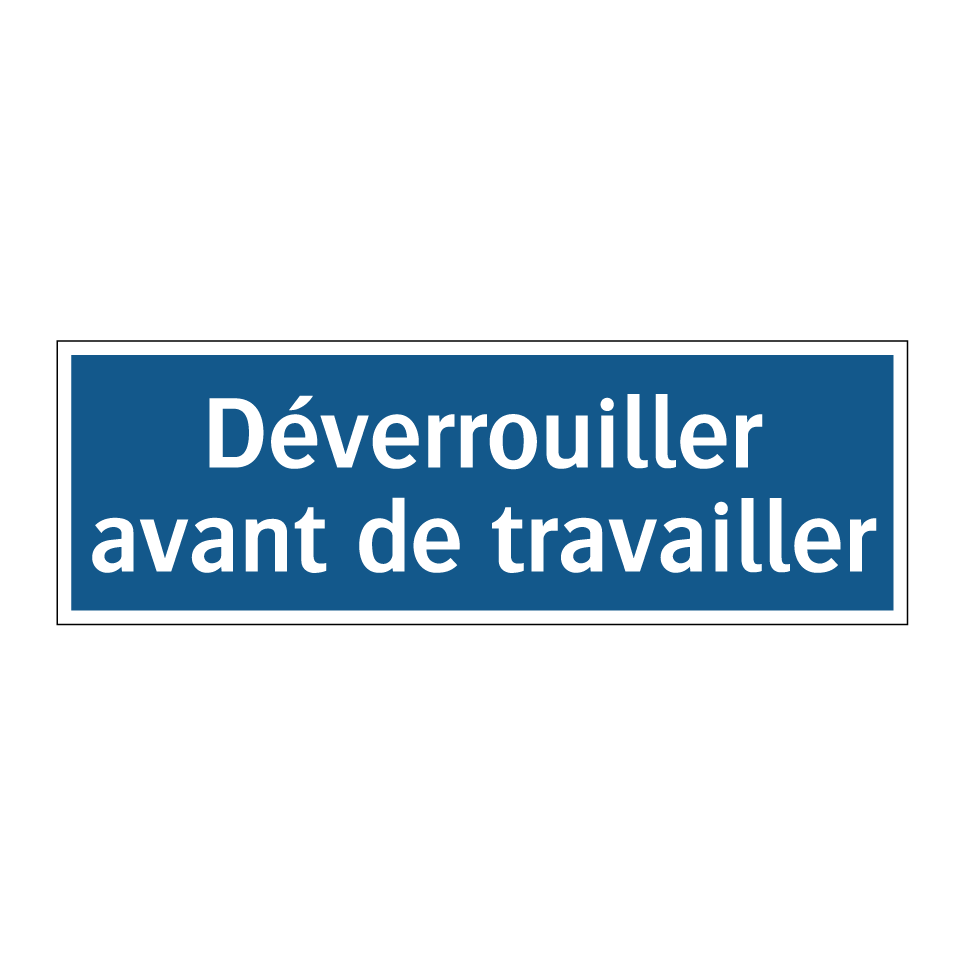 Panneau d'obligation avec le texte : "Déverrouiller avant de travailler"