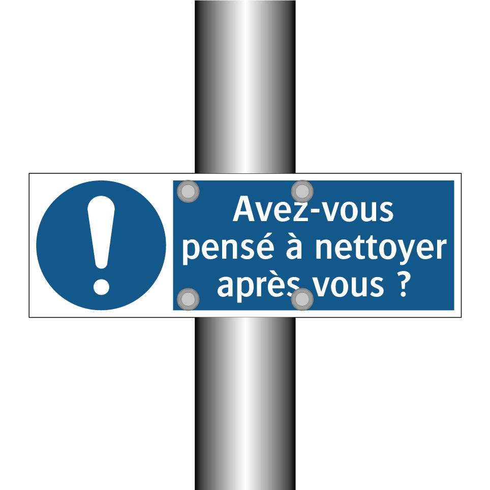 Panneau d'obligation avec le texte : "Avez-vous pensé à nettoyer après vous ?"