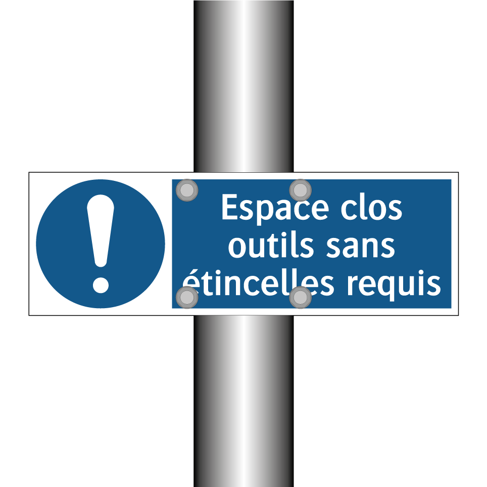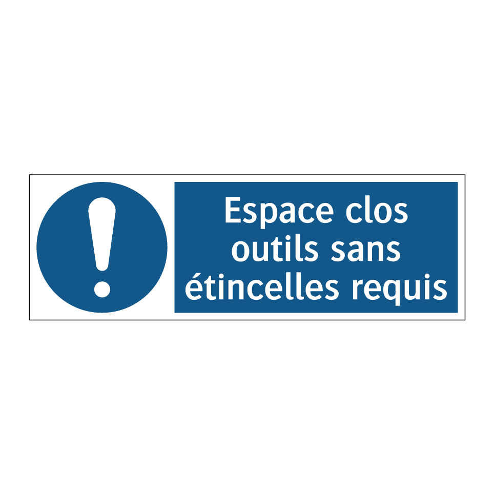 Panneau d'obligation avec le texte : "Espace clos outils sans étincelles requis"