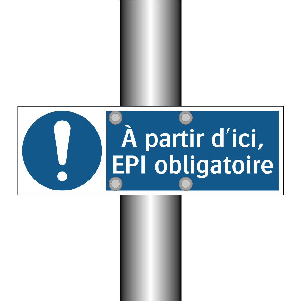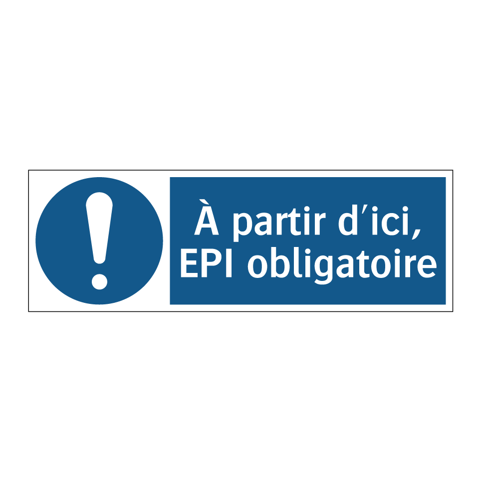 Panneau d'obligation avec le texte : "À partir d'ici, EPI obligatoire"