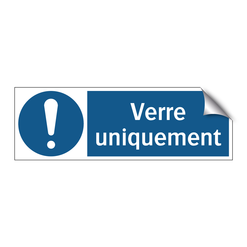 Panneau d'obligation avec le texte : "Verre uniquement"