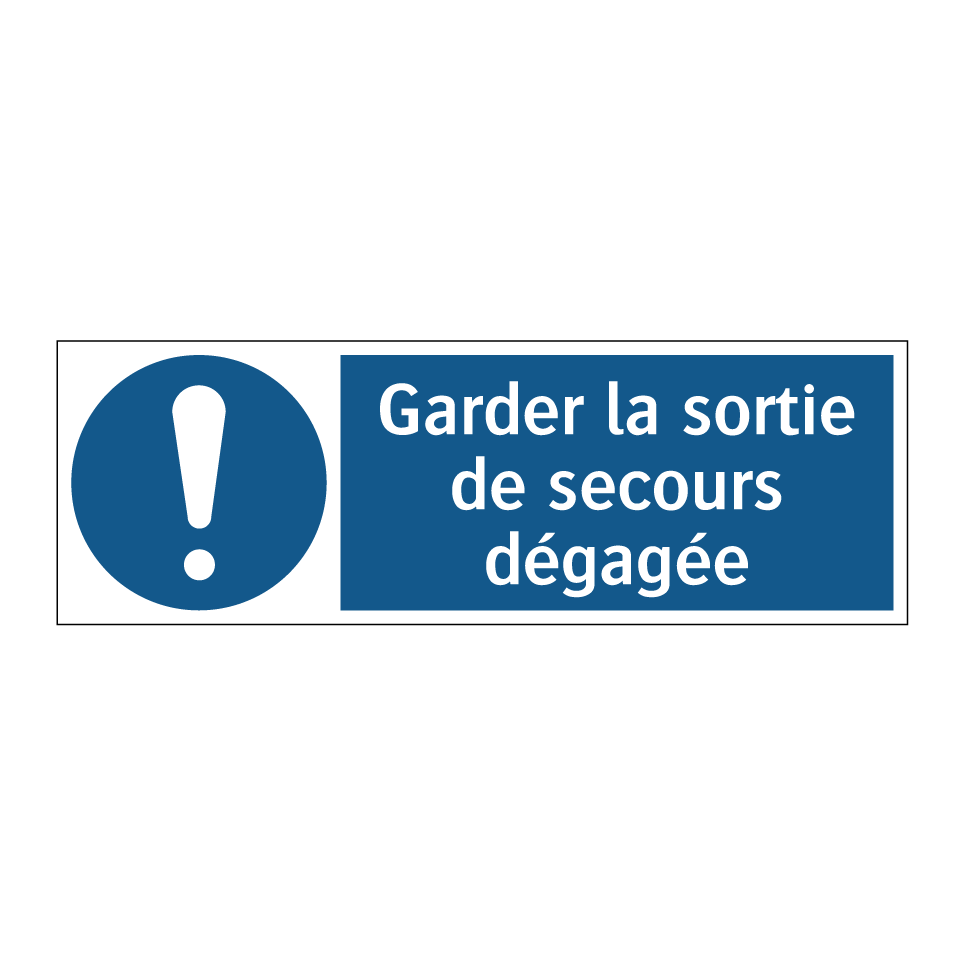 Panneau d'obligation avec le texte : "Garder la sortie de secours dégagée"