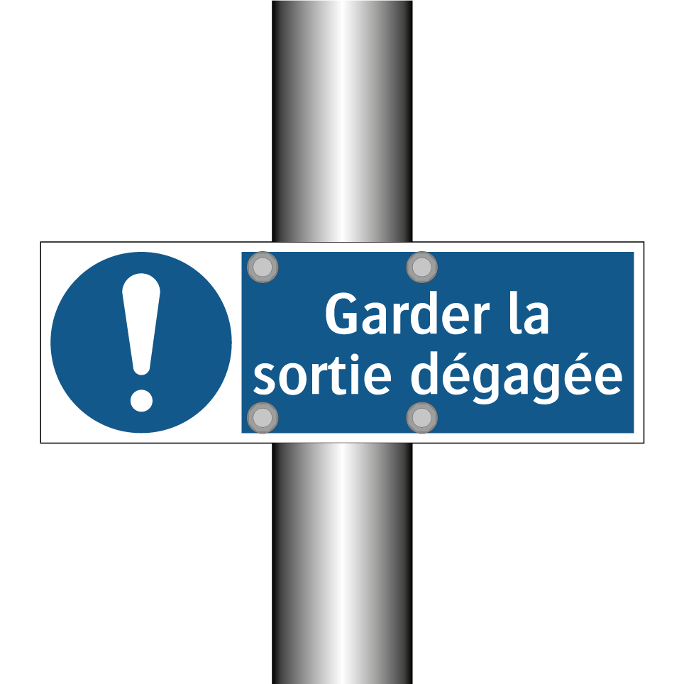 Panneau d'obligation avec le texte : "Garder la sortie dégagée"
