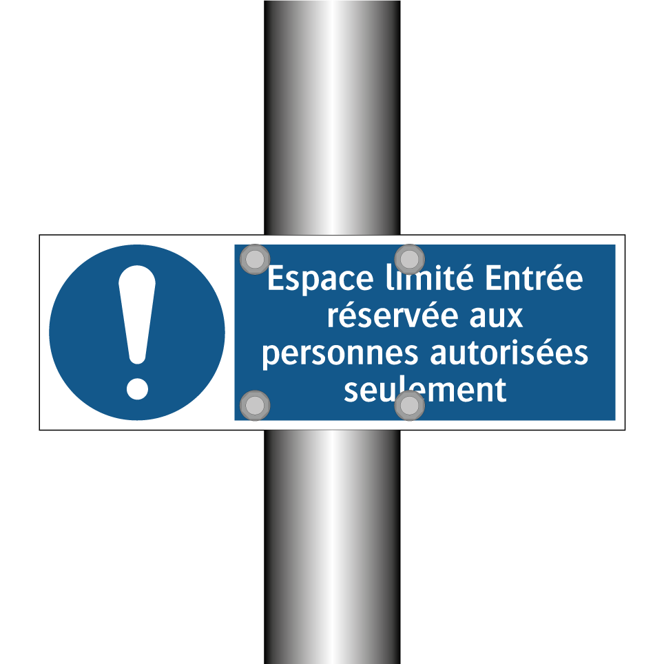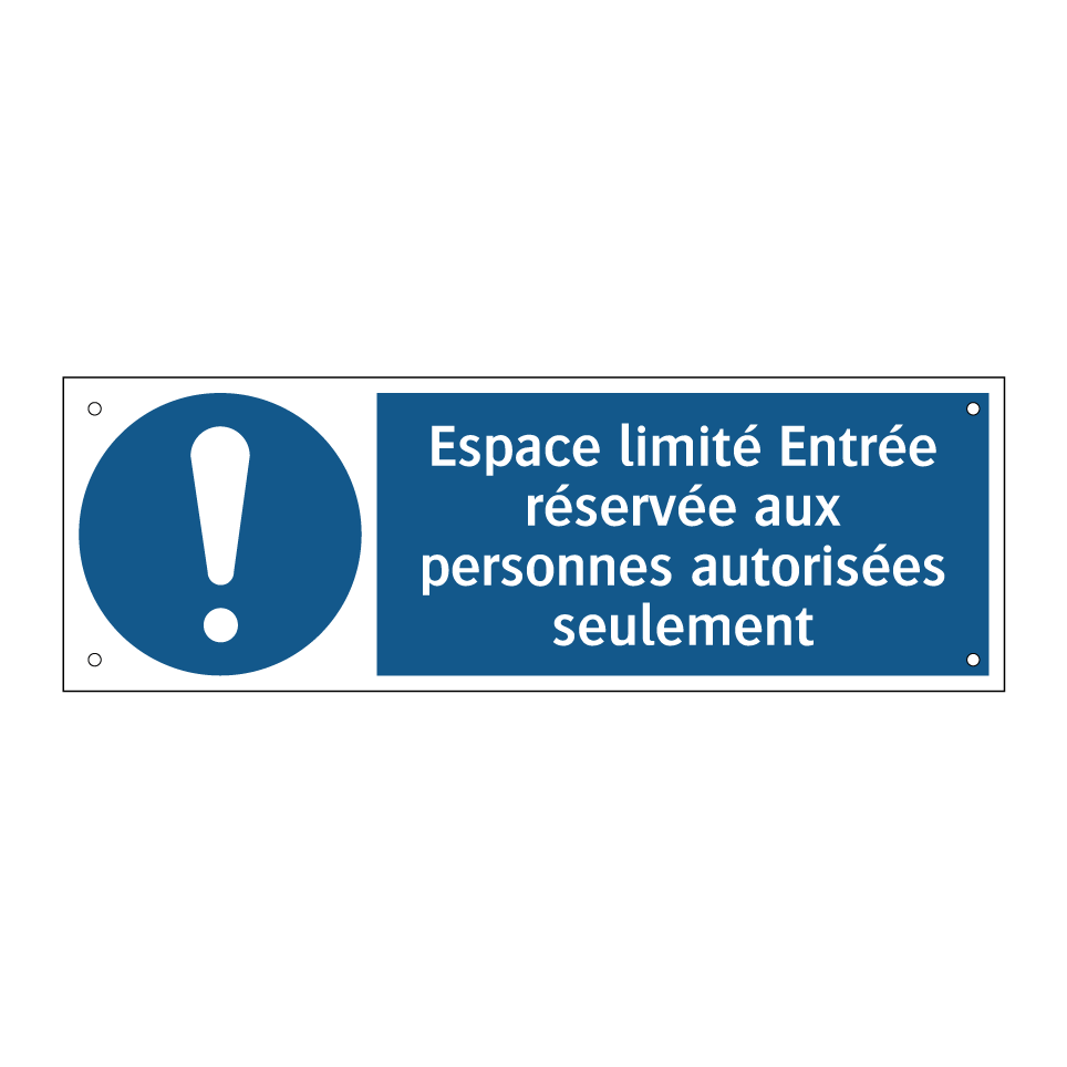Panneau d'obligation avec le texte : "Espace limité Entrée réservée aux personnes autorisées seulement"