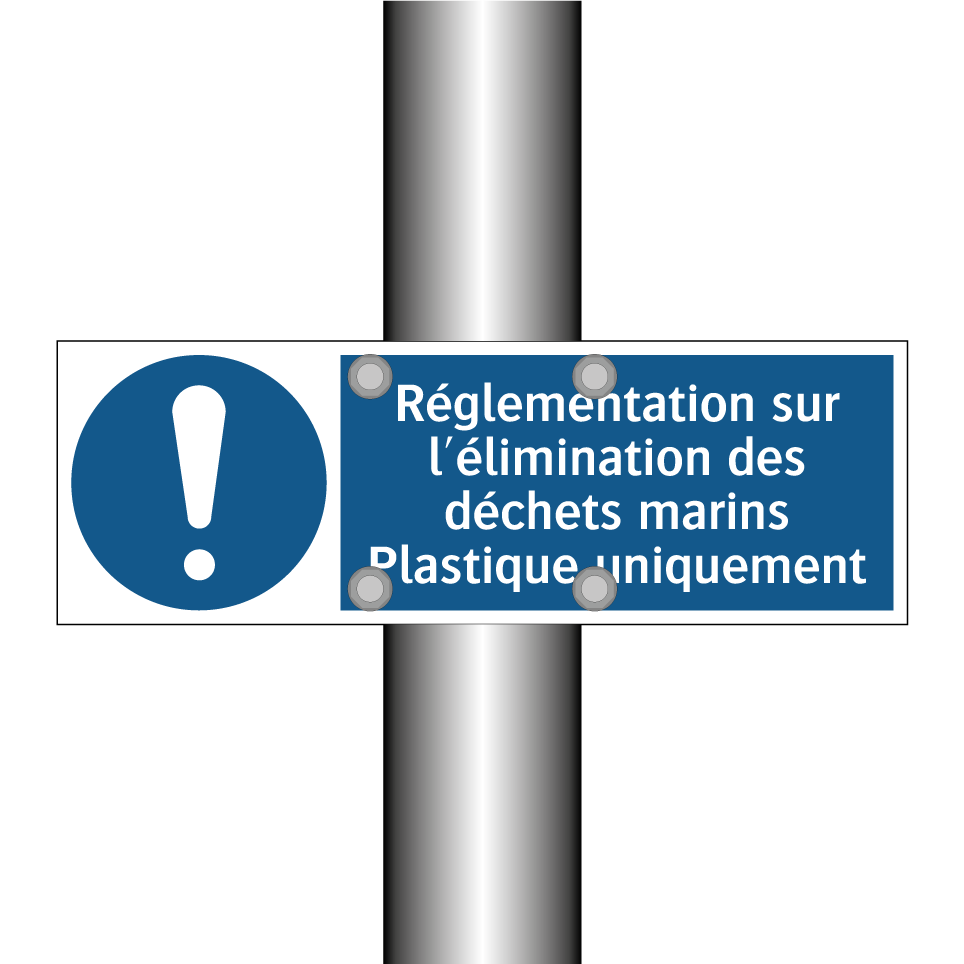 Panneau d'obligation avec le texte : "Réglementation sur l'élimination des déchets marins Plastique uniquement"