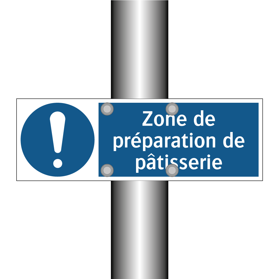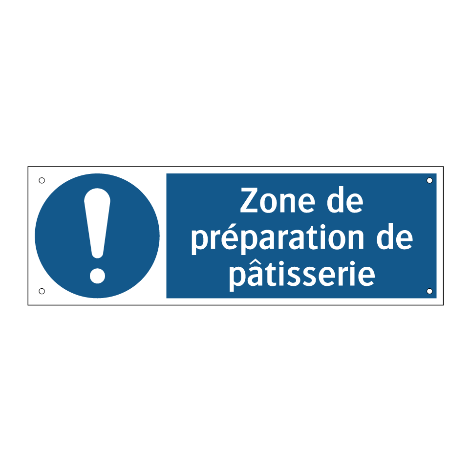 Panneau d'obligation avec le texte : "Zone de préparation de pâtisserie"