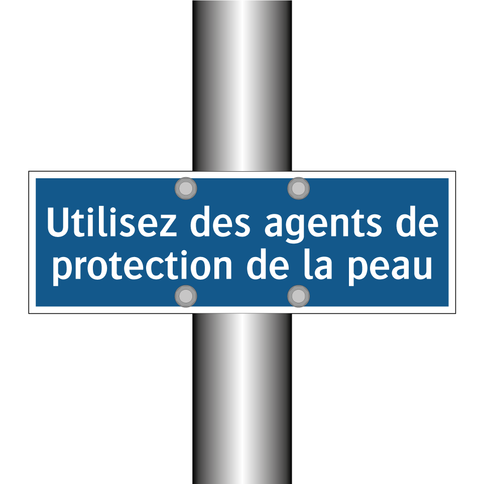 Panneau d'obligation avec le texte : "Utilisez des agents de protection de la peau"