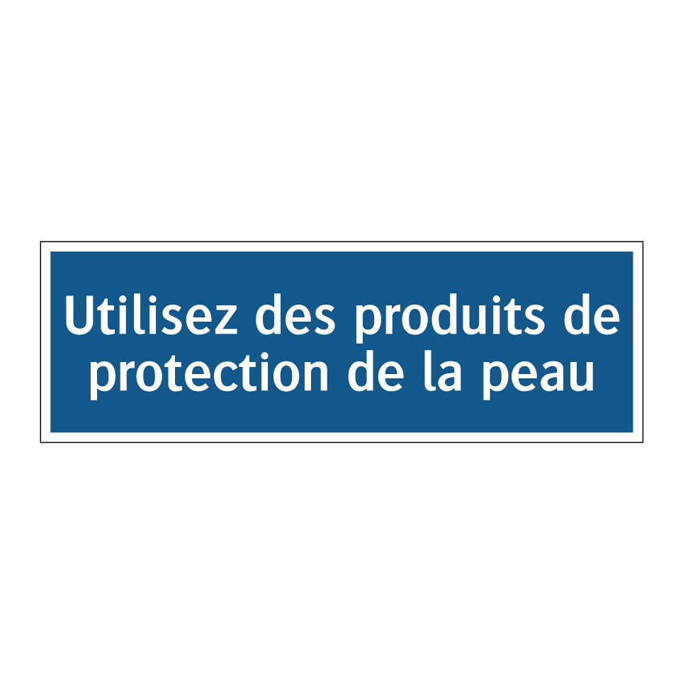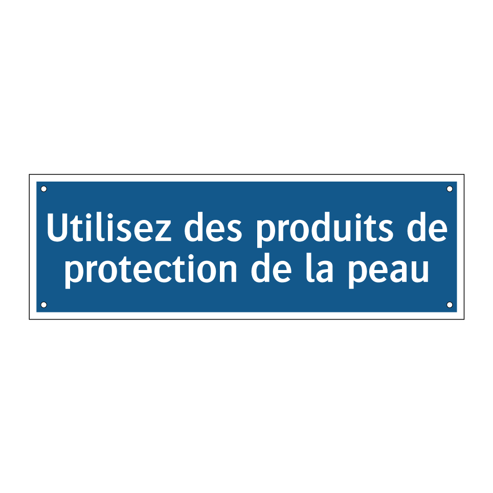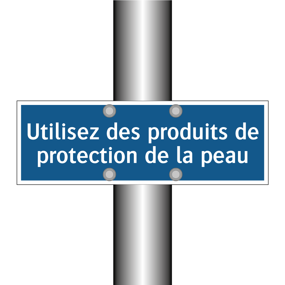 Panneau d'obligation avec le texte : "Utilisez des produits de protection de la peau"
