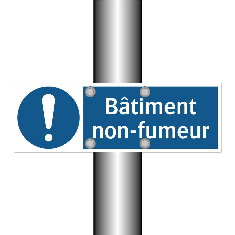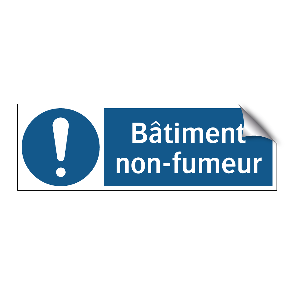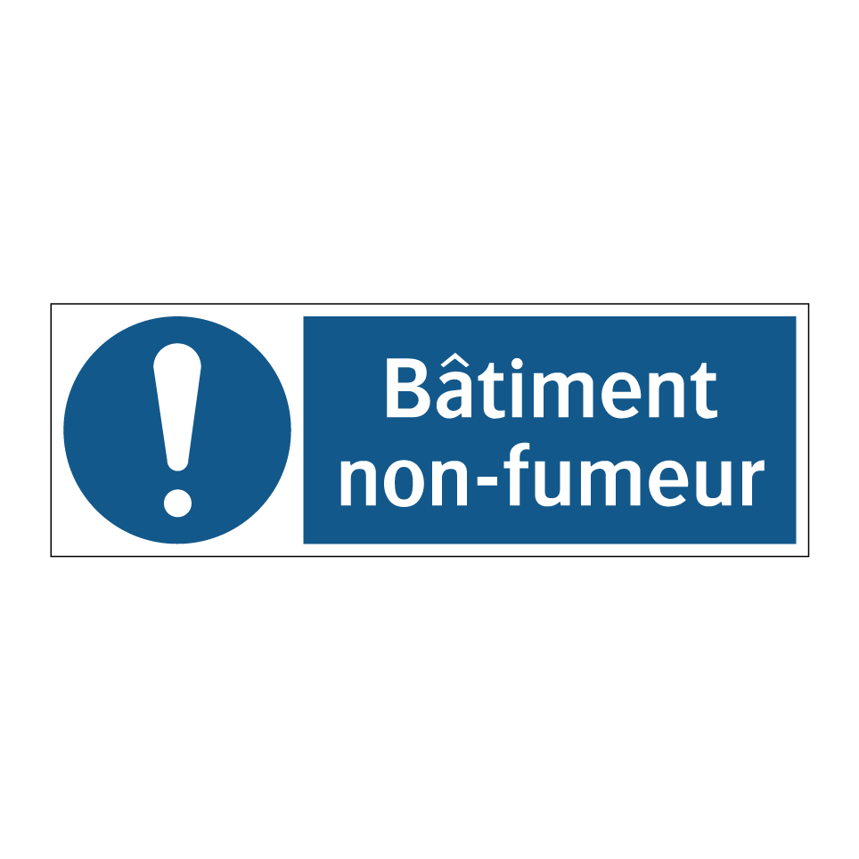 Panneau d'obligation avec le texte : "Bâtiment non-fumeur"
