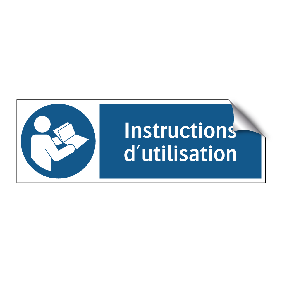 Panneau d'obligation avec le texte : "Instructions d'utilisation"